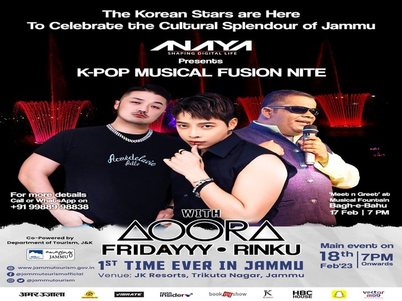 The Directorate of Tourism Jammu is organizing K Pop Musical Fusion Nite to celebrate the cultural splendor of Jammu at JK Resorts Jammu on 18022023 . The event is a great opportunity to experience the fusion of Korean Music with Dogri Music through live performances of Korean singer Mr Aoora and Dogri Folk singer Sh Rinku Mansar Wala The event is first of its kind with respect to showcasing of cu....