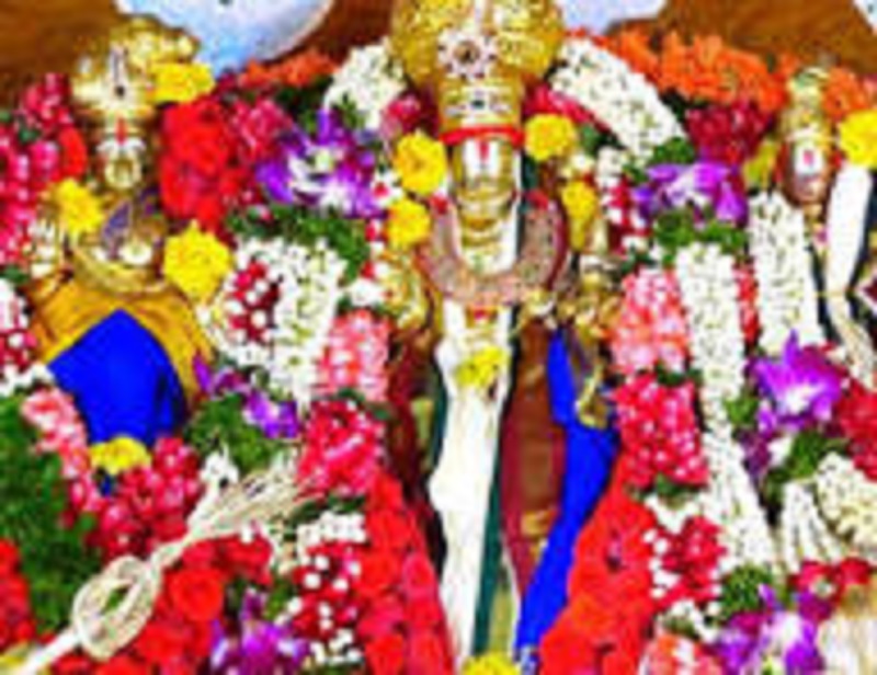 In addition to that he created “Maya Sakthi” to manage stopping the fall of blood drops from Rakta Viliochana body to the ground. At last, after a tough fight with the demon, Lord Narahari killed by cutting his hand with chakrayudha, with the same Sudharsana chakra, he killed the demons also. Then the blood stopped by Maya Sakthi from falling on to the ground, was released by her as a reddish river, know as the “Raktakulya”. This river can’t be passed over even Bhetala and the devils. Maya sakti rode a horse, and so called as ‘Aswarudhamba’ or ‘Gurralakka’. The place where the Lord after killing the demons washed his chakrayudha, become popular as chakrateertham. A dip at the place washed away all the sins. When the Lord wiped of the troubling demon, Vasishta expressed his desire of establishing his Holiness at his hermitage. The Lord was pleased to agree to fulfill his desire. Sage vasishta on an auspicious day, in the Presence of all Gods and angels with all Vedic formalities, erected Lord Narahari at Antaravedi all of them said their prayers to the Lord and sang his glory. Then the Lord told them about the significant greatness of the shrine in future. He described Antarvedi in many ways as the easiest means for achieving the ultimate Mukti.