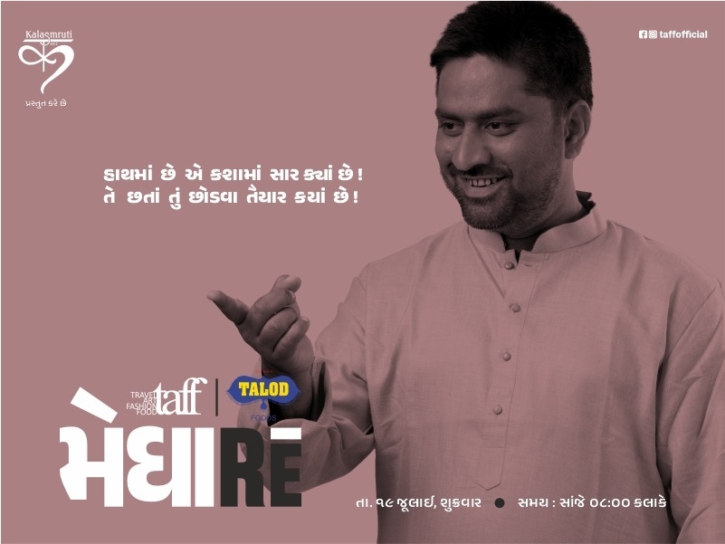 Medha Ray by TAF (Travel, Art, Fashion, Food) Poetry Recitation Program on 19th July 2024 on Friday at 8.00 PM at Shree swaminarayan gurukul vishwavidya pratisthanam Organized at Campus, Charodi, Ahmedabad. In which the famous poets of Gujarat will present their presentation. Kavishri Harsh Brahmabhat, Bhavesh Bhatt, Bhaveen Gopani, Madhusudan Patel, Love Sinha, Vipul Parmar, Dilip Srimali, Hitesh Vyas and Taha Mansuri will be directing. Actor Chetan Daya from Gujarat is going to present his presentation for the first time in this poet convention. Writer, actress Dhara Bhatt will present her monologue in this program. The program was chaired by P.P. Madhavapriyadas Swamy (Chairman, SGVP) will be present. This program is hosted by Tanmay Seth.